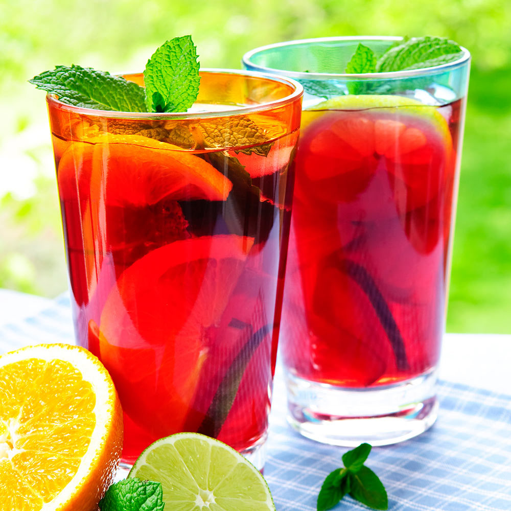 start with a pile of juicy red raspberries, add lemon and plum, lots of sweet red wine poured on top, and a hint of orange as a garnish!
